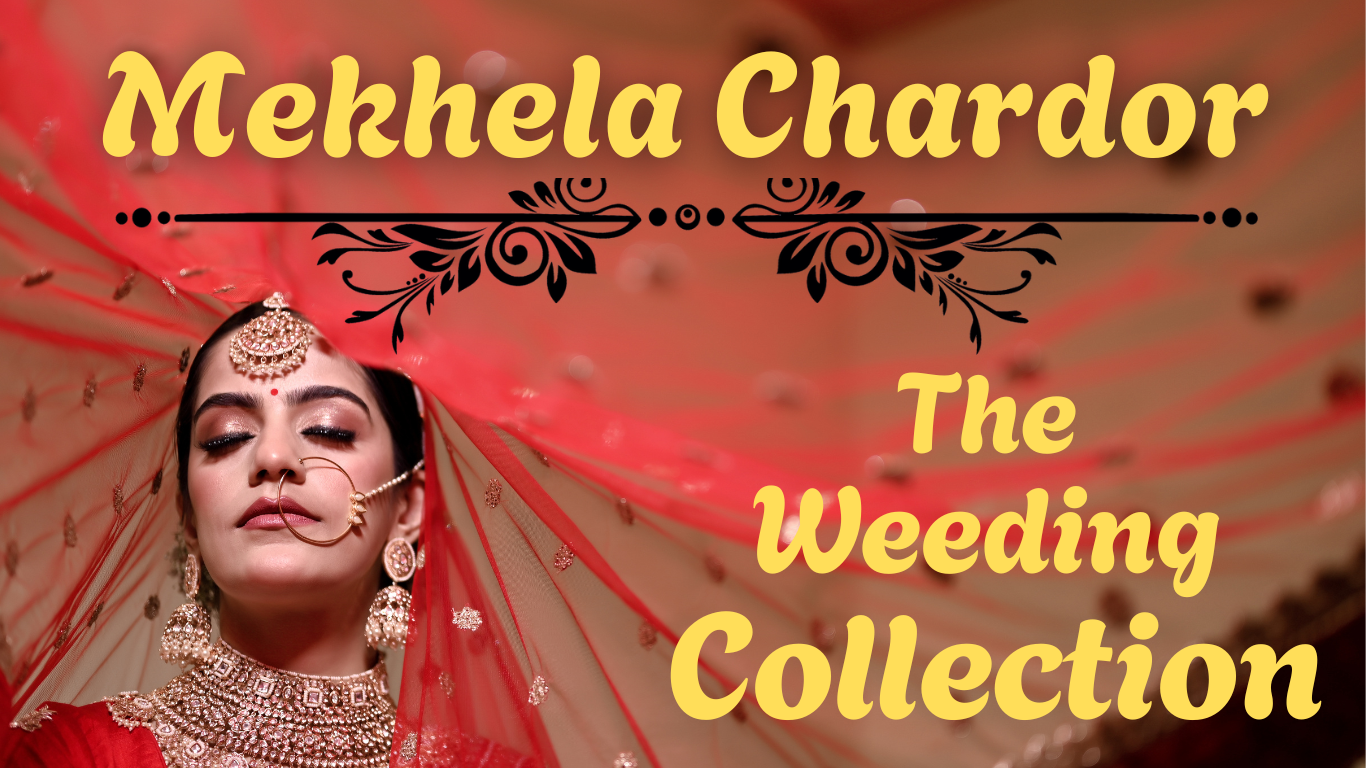 Mekhela Chador Zari Gold Embroidery Assam Traditional Attair