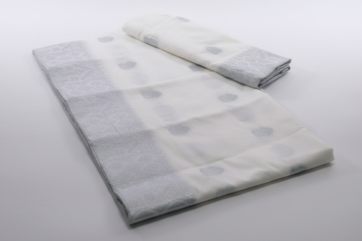 Mekhela Chador Zari Silver Embroidery Assam Traditional Attair